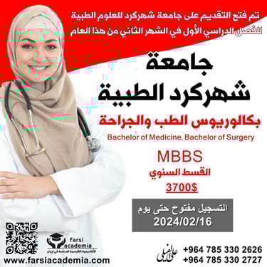 مجال الدراسة : بكالوريوس الطب والجراحة MBBS